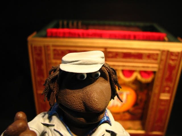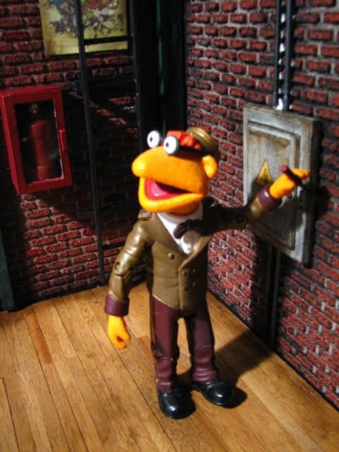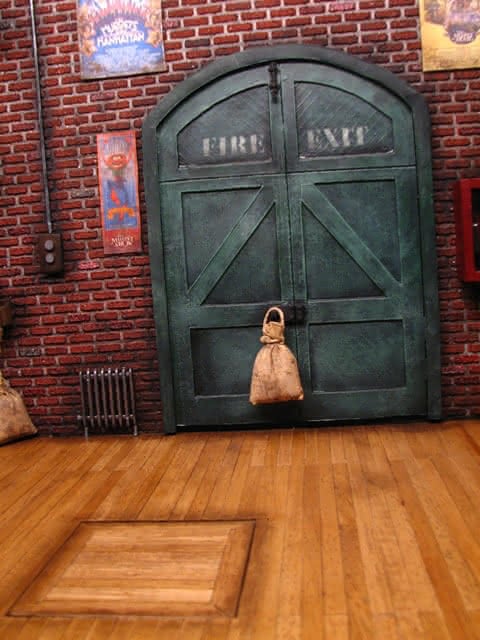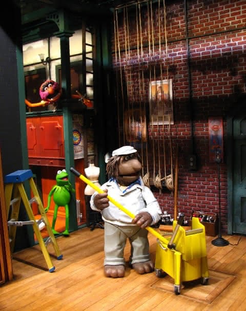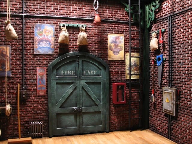 Ik voegde Muppet Movie-posters toe en zorgde ervoor dat Jim Henson betrokken was bij de posters die ik koos. De baksteen was met de hand gemaakt van betonmix. De zandzakken zijn gemaakt van scratch