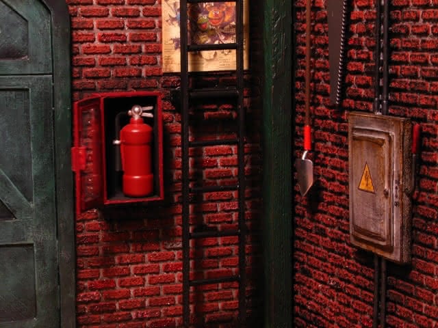 Bijna alles is hier vanaf nul opgebouwd. Sommige palissades rekwisieten werden toegevoegd. Let op de blusserhouder. Veel plaatsen om rekwisieten uit de serie op te hangen.
